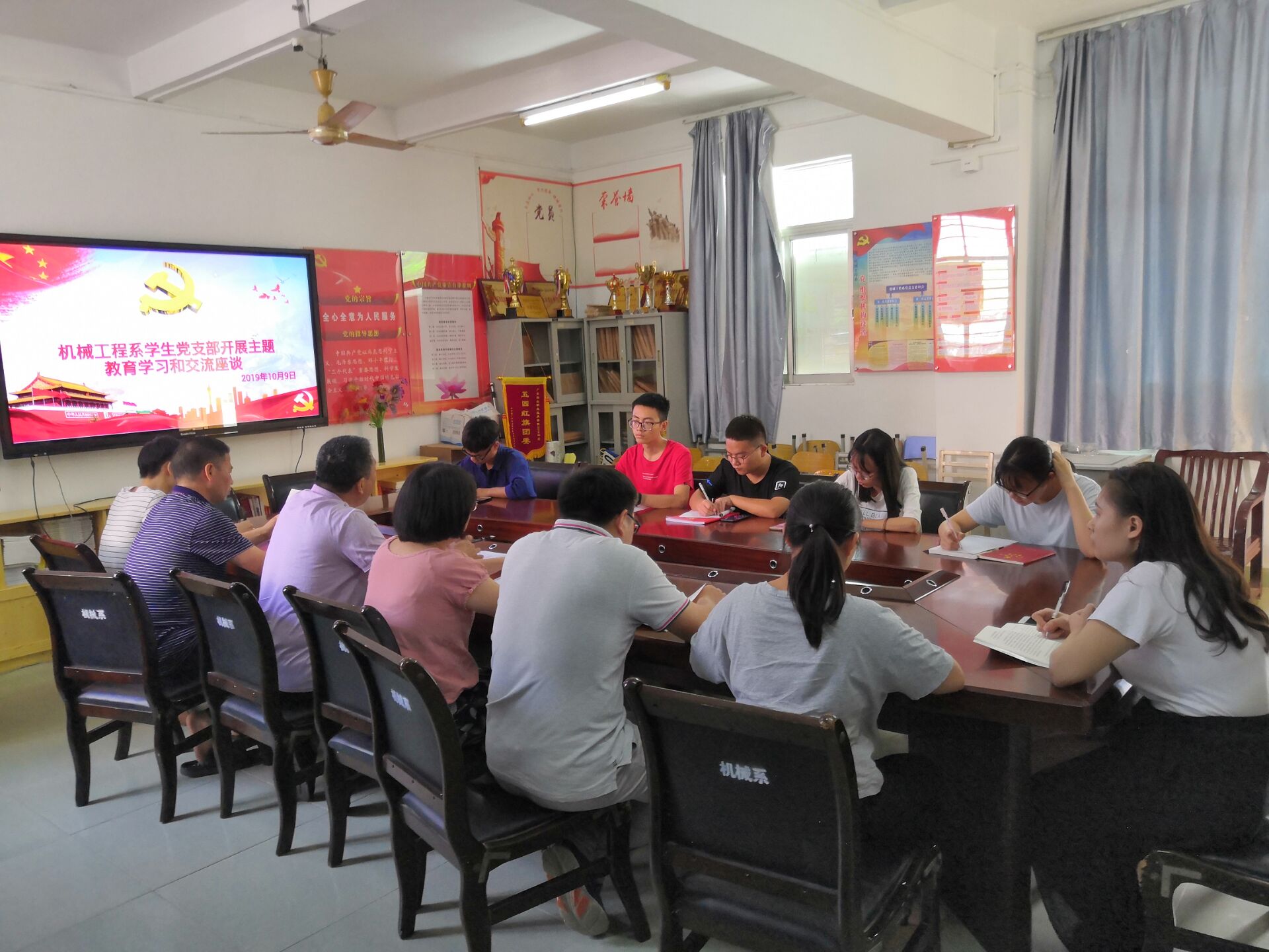 根据学院“不忘初心、牢记使命”主题教育的安排,10月9日,机械系学生党支部组织全体党员开展了“不忘初心、牢记使命”主题教育学习和交流座谈会,会议由学生支部书记向丽主持。