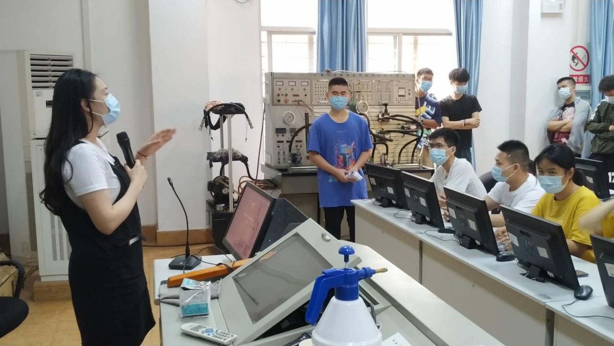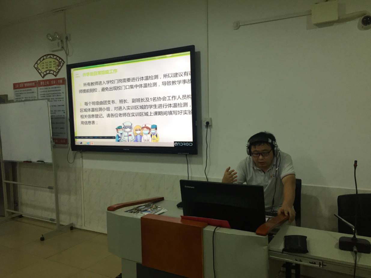 第二部分由学院团委书记张啸杰老师为大家讲解日常实验实训区域、宿舍消杀、通风等知识以及接待第二批同学返校的相关工作,并带领学生志愿者们针对进入实训区域体温检测及异常情况进行了模拟演练。以确保志愿者对于公共区域消杀、通风工作有足够的知识和经验储备,为后续学生顺利返校复课,创造安全的、有序的实验实训教学环境。