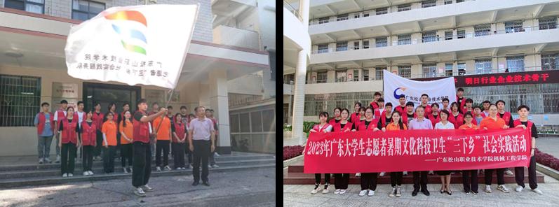 6月28日上午,机械工程学院团委联合青年志愿者协会、3D创客工作室、思源学社等社团前往广东省韶关市油山镇开展2023年大学生暑期“三下乡” 社会实践。社会实践活动出征暨授旗仪式在学校曲江校区和字楼前举行。机械工程学院党总支书记赵保宁、副书记肖华碧、学生党支部书记宋雪晖,团委书记余丽,辅导员解飞等教师代表和实践团队员参加仪式。