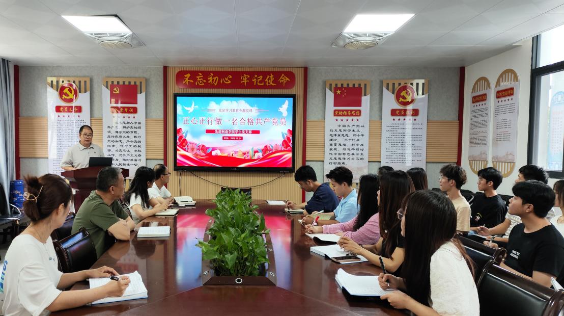 学生支部书记解飞通过违反党纪的具体案例,要求新吸收的预备党员把遵规守纪刻印在心,内化为言行准则,进一步强化纪律意识、加强自我约束、提高免疫能力,增强政治定力、纪律定力、道德定力、抵腐定力,始终做到忠诚干净担当。