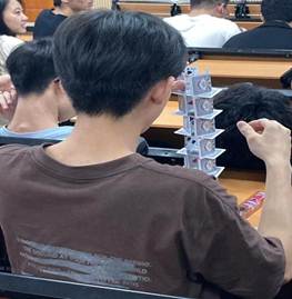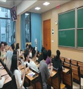来到第三场比划猜词,游戏开始到游戏结束,每一组都没有任何的收敛,热情沟通,他们相互调整了位置,相信伙伴,大胆猜想,一个个满分的答题者不断涌出。活动过程中台下也是不停的被台上的表演者逗的捧腹大笑,发出哈哈的笑声铺满了整个教室。后续的两场活动在主持人组织下热烈且有序的开展着……