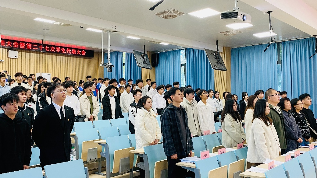 青春聚力担使命,奋楫扬帆启新程。11月20日,先进制造学院第二十四次团员代表大会暨第二十七次学生代表大会(下面简称“双代会”)在厚C101正式召开。学院党总支副书记肖华碧、学生支部书记解飞、团委书记余丽、团委副书记马海琳、辅导员代表、院团委及学生会骨干成员,与来自各团支部、班级的150名学生代表齐聚现场,共话团学发展蓝图。