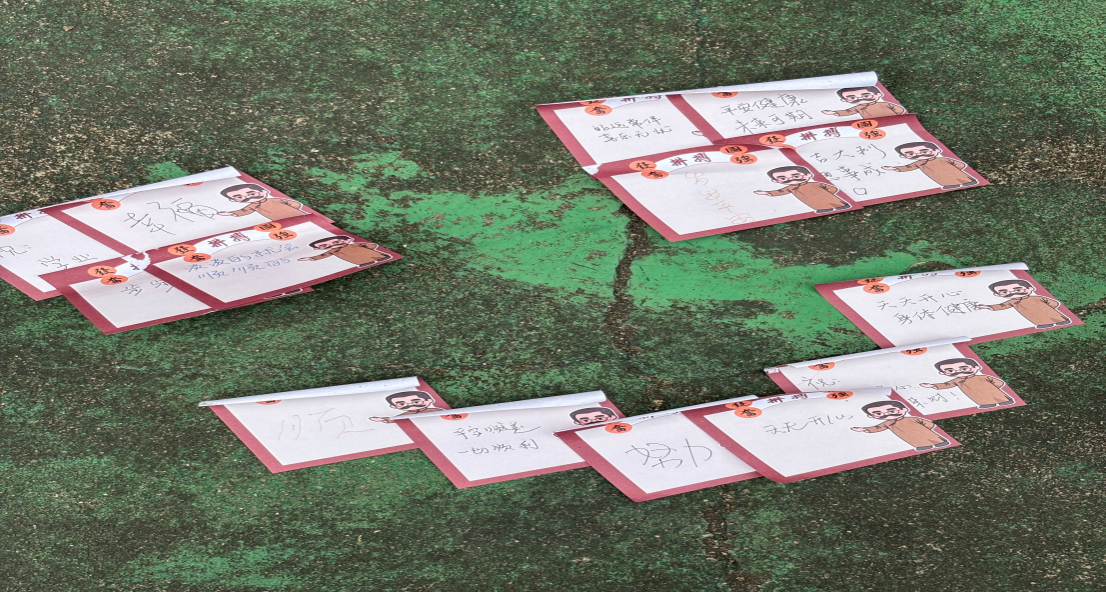 温暖情感流淌,匿名书写传递治愈“心”关怀,活力竞技过后,活动转入温情满满的“匿名祝福传递”疗愈环节。同学们手持心愿卡片,静心书写对自我的期许、对未来的憧憬,以及对同窗的善意与祝福。