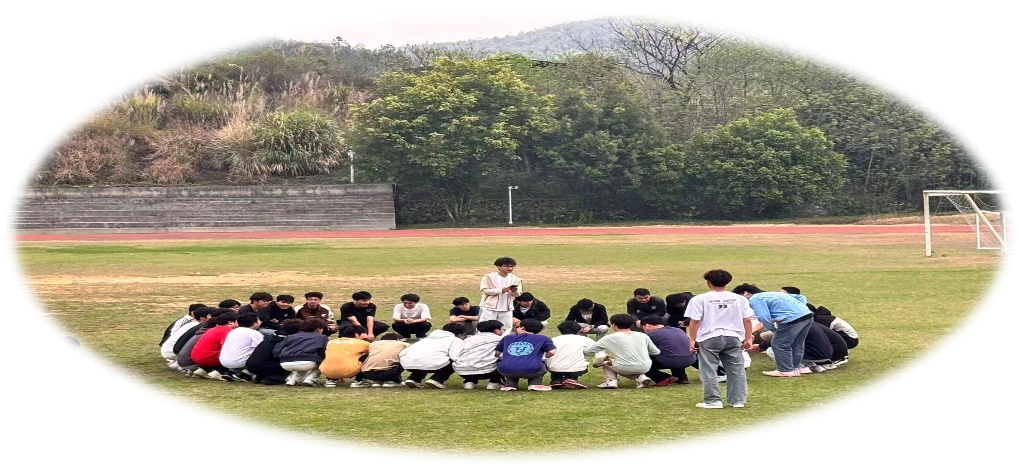 活动伊始,在班委及辅导员钟永斌老师的引导下,全体同学手拉手围成“生命同心圆”,开启“花开又花闭”破冰互动。伴着“花儿开”的口令,同学们彼此支撑、放心后仰,在信任联结中打破心理隔阂,感知安全的人际边界;随着“花儿闭”的指令,大家紧紧相依、同心共振,在亲密互动中体悟集体归属感,凝聚团队向心力。一开一合的趣味体验,既舒缓了日常学业压力、放松身心状态,又拉近了同学距离,让温暖与信任在班级间悄然传递。