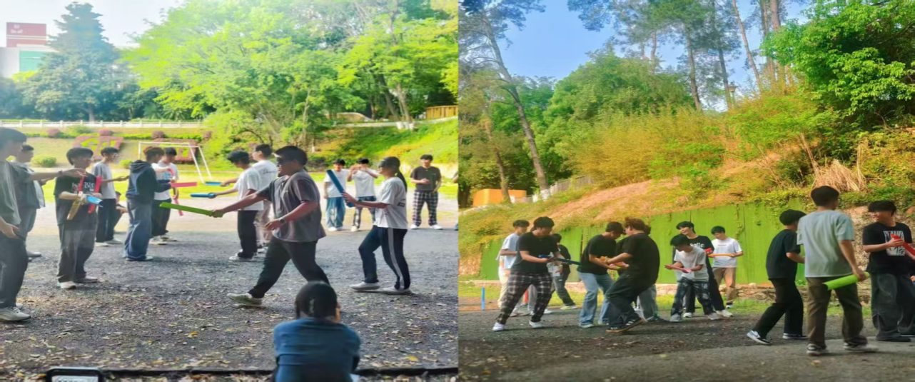 随着活动深入推进,同学们逐渐放下拘谨、积极投入,从前期的生疏不配合,转变为主动参与、全力配合。现场笑声不断、氛围轻松愉快,各组之间互相鼓励、彼此加油,充分展现出青春活力与团队精神。