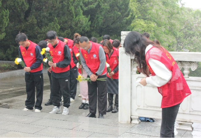 在肃穆的氛围中,全体人员默哀并三鞠躬,重温革命先烈为国家独立、民族解放而奋斗的峥嵘岁月,感悟英烈们忠诚爱国、无私奉献的崇高精神。随后,师生们手持白菊,依次走向烈士墓碑敬献鲜花,以朴素而庄重的方式表达对革命先烈的无限追思与敬仰。
