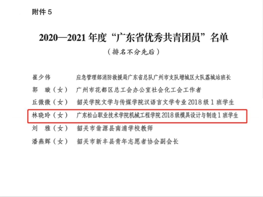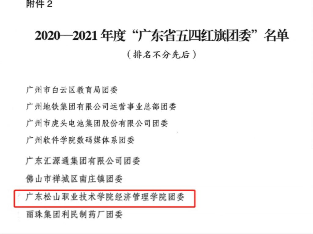 近日,共青团广东省委下发《关于表彰2020-2021年度广东省五四红旗团委(标兵)、五四红旗团支部(标兵)、优秀共青团员、优秀共青团干部和百佳团支部书记的决定》(团粤发〔2021〕8号),我校经济管理学院团委荣获“广东省五四红旗团委”称号,机械工程学院学生林晓玲荣获“广东省优秀共青团员”称号。