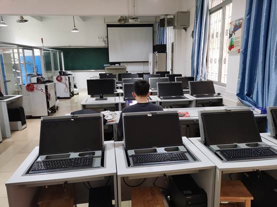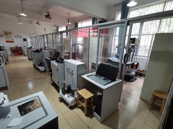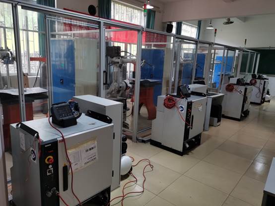 工业机器人应用技术实训室建成于2016年,建筑面积约110㎡,投资总额250多万元(设备资产总值200万元),是开展工业机器人应用技术实践教学、科研、社会服务的重要基地。