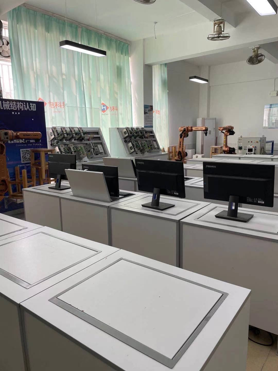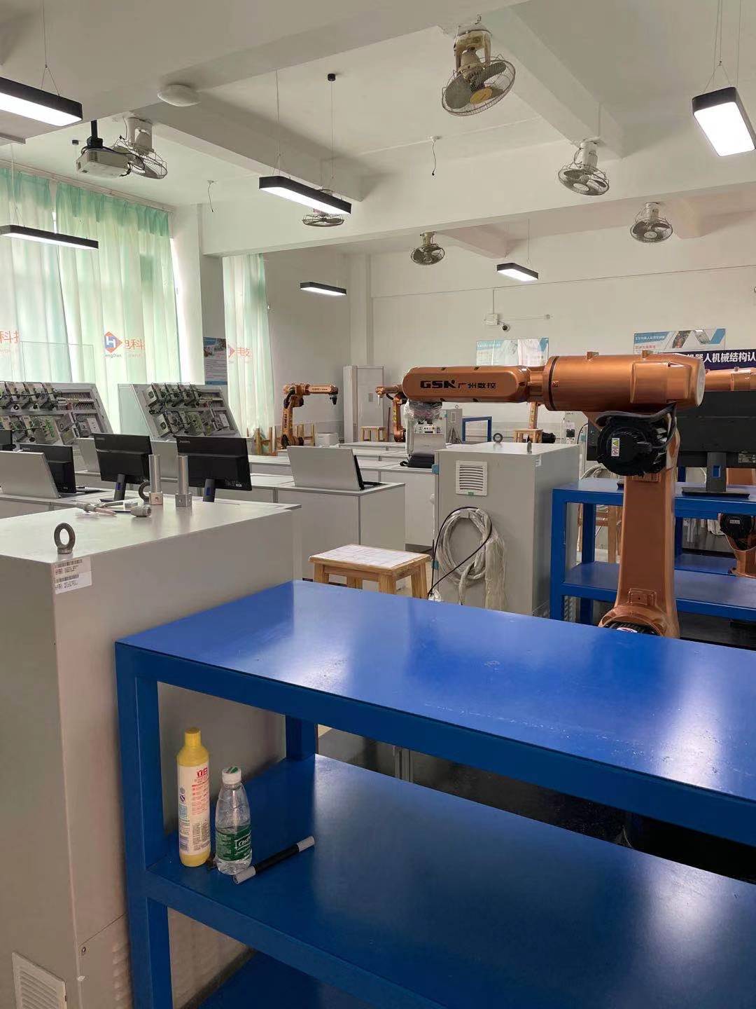 工业机器人应用技术实训室建成于2017年,建筑面积110㎡,投资总额200万元(设备资产总值150万元),是开展工业机器人编程、装调实践教学、科研、社会服务的重要基地。