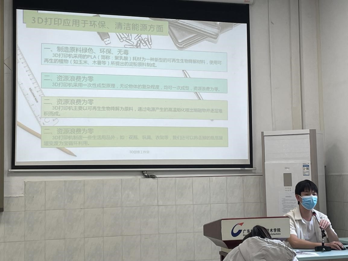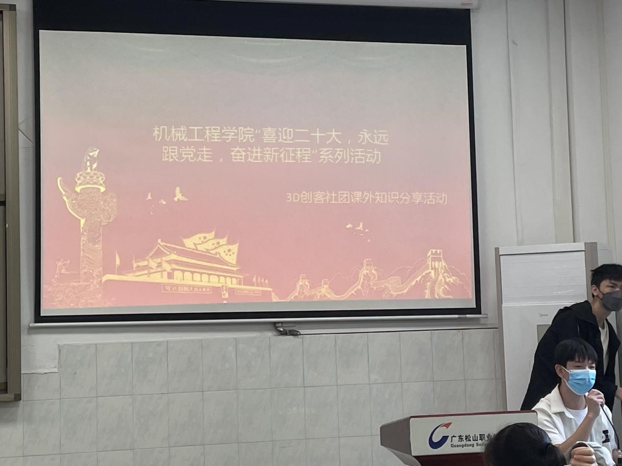 2022年5月2日,在五四青年节来临之际,3D创客工作室积极参与了机械工程学院团委组织的课外知识分享活动。