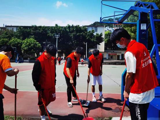 以学校篮球场、大操场、校道等场地进行,活动以周边死角和垃圾为重点,志愿者们三人一堆,俩人一组,分工明确的开始了打扫清洁。
