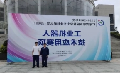 4月24日,由广东省教育厅主办的广东省职业院校学生专业技能大赛(高职组)工业机器人技术应用赛项在顺德职业技术学院圆满闭幕,我校机电团队(学生:蒋鹏、杨志高;指导老师:李嫄、李胤昌)以扎实的功底荣获此赛项一等奖(第二名),为我校增得一个参加广东省职业院校学生专业技能大赛(高职组)国赛遴选赛资格名额。