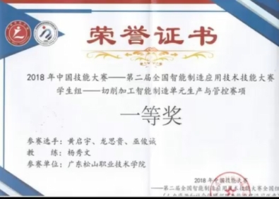 开学第二天,小全收到一个硬核喜讯:机械系代表队师生(指导老师:杨秀文、李福运、李嫄;参赛学生:16机电一体化技术1班黄启宇、龙思贵,16数控技术1班巫俊诚 )在2018年中国技能大赛暨第二届全国智能制造应用技术大赛全国总决赛中取得“切削加工智能制造单元生产与管控赛项”一等奖的优异成绩,其中杨秀文老师获“优秀教练”称号。这是我院师生首次进入国家一类赛国赛决赛并获一等奖。小全怀着激动的心情把手掌拍红向他 们表示热烈祝贺!