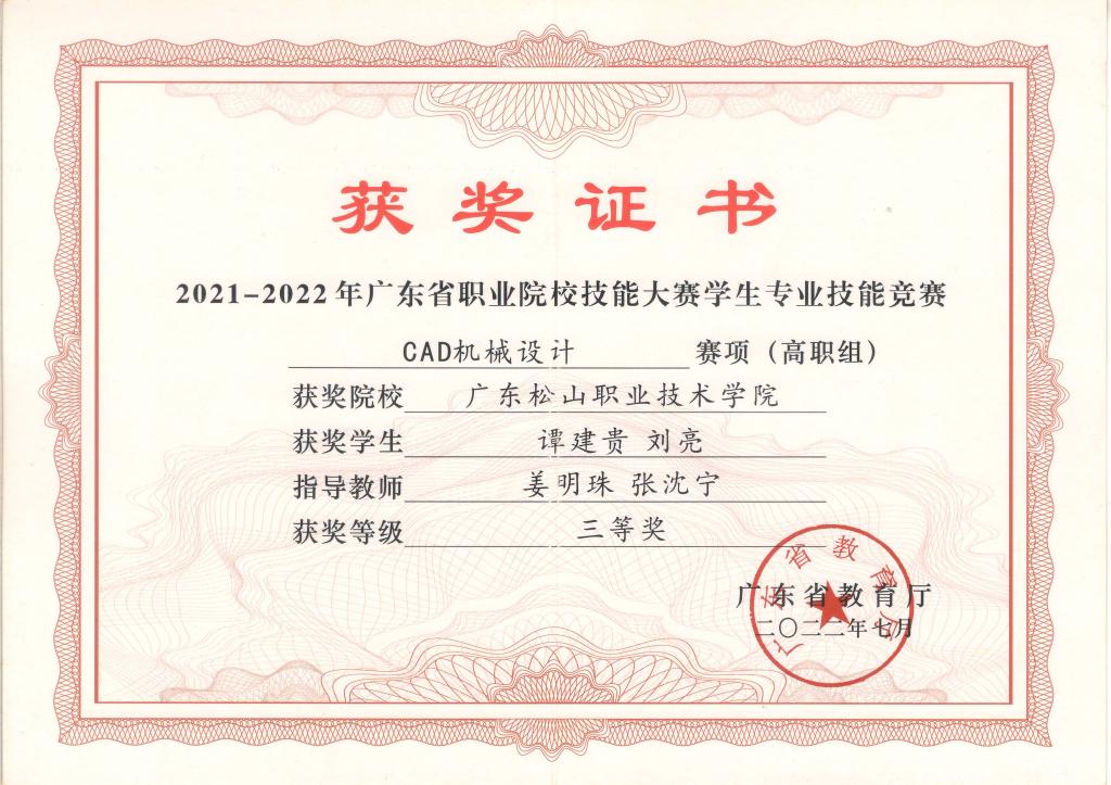上一条:2021-2022年广东省职业院校技能大赛学生专业技能竞赛汽车技术赛项三等奖 下一条:2021-2022年广东省职业院校技能大赛学生专业技能竞赛模具数字化设计与制造工艺赛项-三等奖