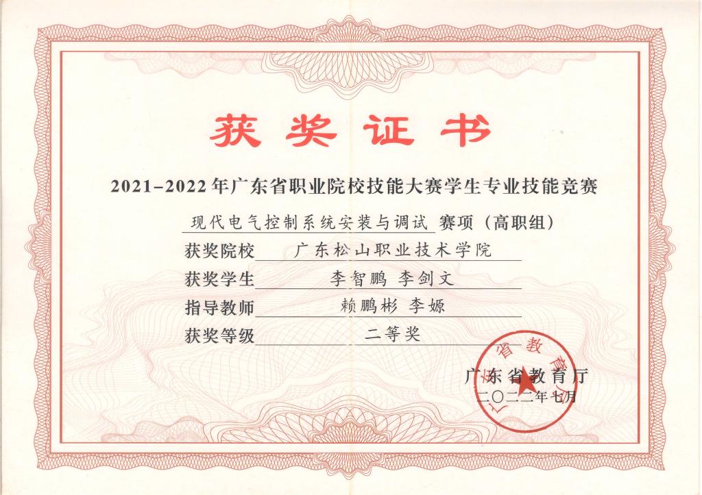 上一条:-2021-2022年广东省职业院校技能大赛学生专业技能竞赛机器人系统集成赛项-三等奖 下一条:2021-2022年广东省职业院校技能大赛学生专业技能竞赛汽车技术赛项三等奖